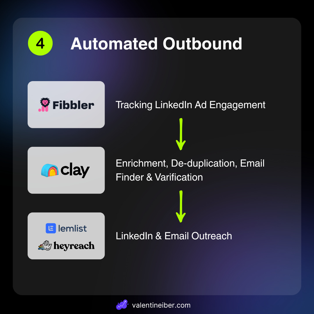 Use tools like Clay, Lemlist, Instantly.ai, HeyReach.io, etc. to automate outbound sequences.