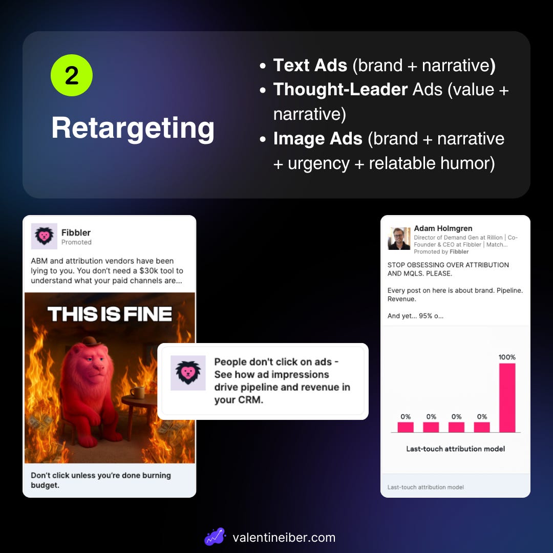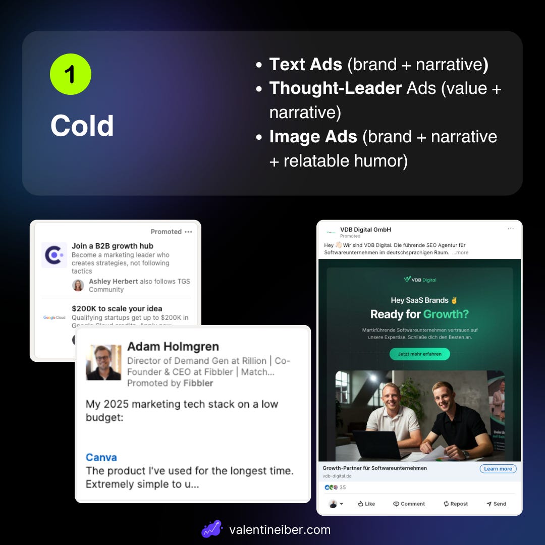 Thought Leader Ads with value and narrative (for this the founder must actively create content – if that’s already an issue, DM me and I’ll show you how to do it)
