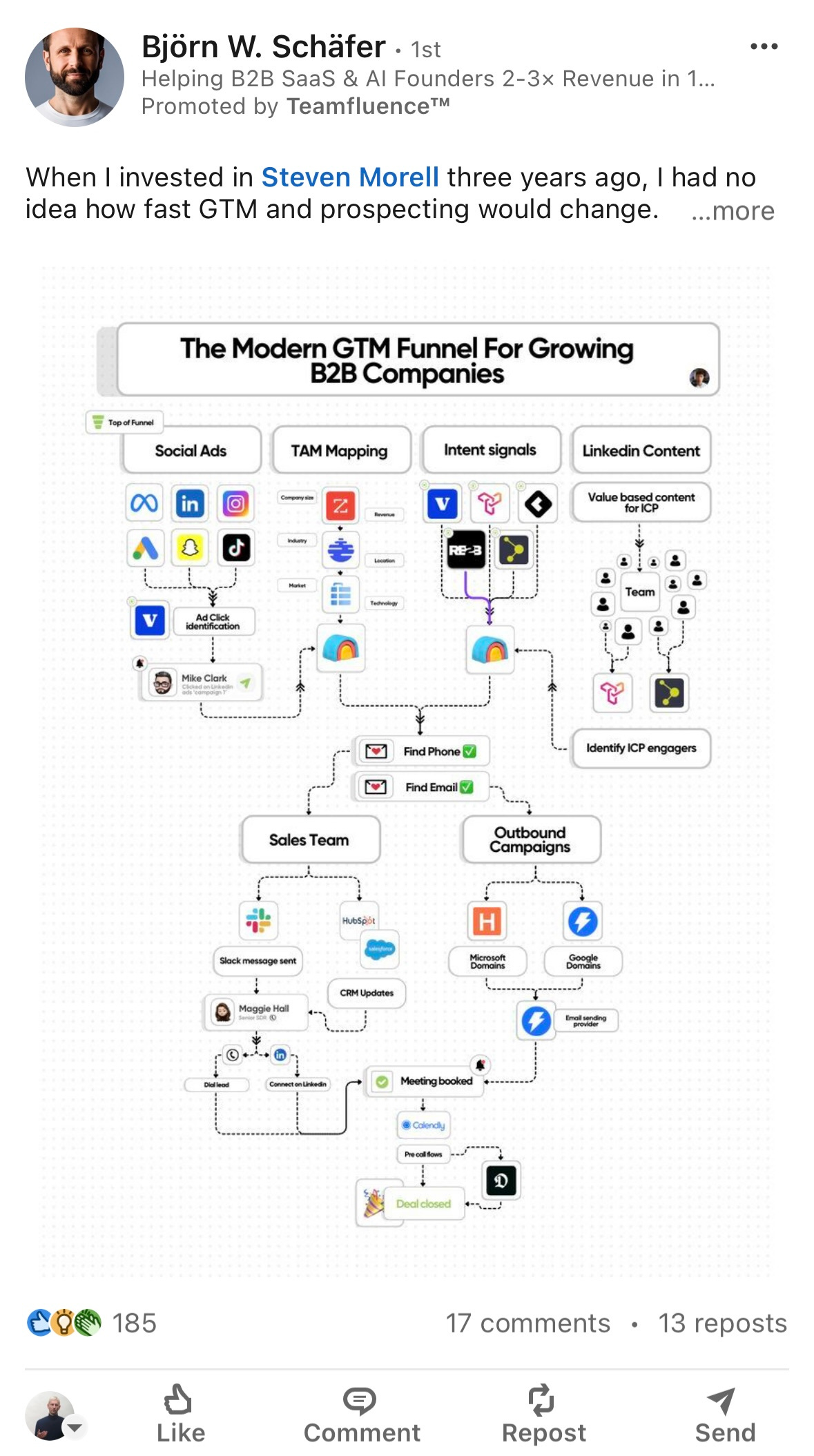 Especially when your Go-To-Market motion is account-based, I recommend to combine LinkedIn Ads with strategic outbound activities.